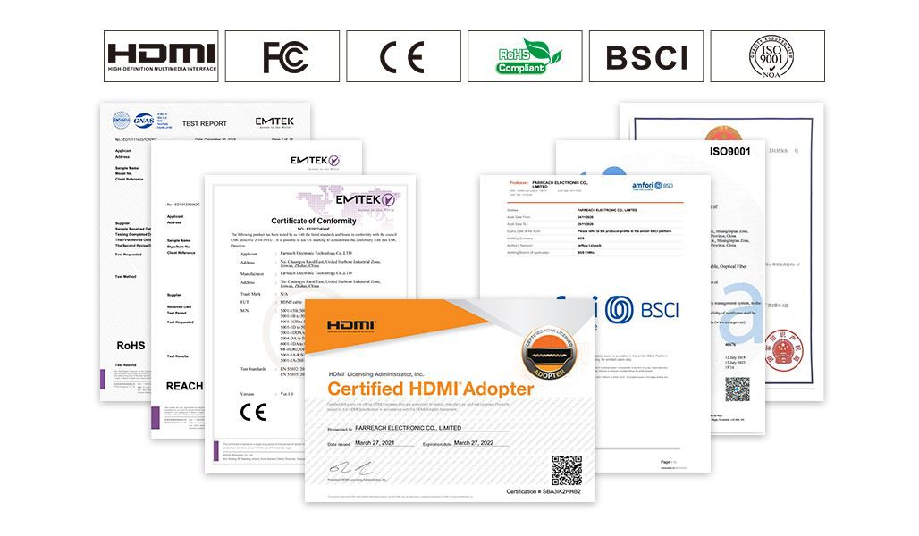 Mevcut kalıplanmış ürünlerimizin yanı sıra Farreach, müşterilerimizden gelen çizimlere veya numunelere göre kablo ürünleri de üretebilmekte ve ücretsiz ve profesyonel tasarım hizmetleri sunabilmektedir. Hammaddeden bitmiş ürünlere kadar üretim sırasında her adımda ürün kalitesini kritik bir şekilde yüzde 100 QC denetimi ve satış sonrası hizmetler ile kontrol ediyoruz. Tüm ürünlerimiz 1 yıl garantilidir, kaliteden emin olabilirsiniz.